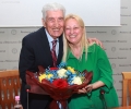 Researcher Ali Aliu and Irena Toci during a ceremony organized in the premises of the Academy of Sciences, where researcher Ali Aliu received the Naim Frasheri award. The ceremony was organized by the Academy of Sciences and the National Book Center, on the occasion of the 90th anniversary of the birth of Ali.