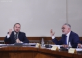 The chairman of the parliamentary investigative committee for extracting data from the TIMS system, Ervin Salianji and MP Toni Gogu speaking during a meeting of this committee. After the session, the parties reach an agreement, thus approving the requests for information that will be sent to the institutions.