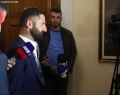 The former director of Technology in the State Police, Ervin Muca, speaking to journalists after a session of the parliamentary investigative commission for extracting data from the TIMS system. Muca is currently in house arrest, as he is accused of copying TIMS system data without authorization.