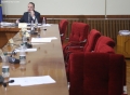 The General Director of the State Police, Muhamet Rrumbullaku, speaking in a session of the parliamentary investigative committee for extracting data from the TIMS system. Rrumbullaku gave his testimony only in front of the opposition MPs, after the departure of the SP MPs.