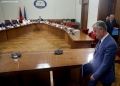 The General Director of the State Police, Muhamet Rrumbullaku, entering a session of the parliamentary investigative committee for extracting data from the TIMS system. Rrumbullaku gave his testimony only in front of the opposition MPs, after the departure of the SP MPs.