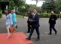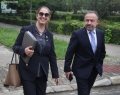 MINISTERS AND MPS ENTERING PARLIAMENT - Minister of Tourism and Environment, Mirela Kumbaro and MP Laert Duraj entering the parliament building for a parliamentary session. While the deputies entered the parliament, the miners protested about their pensions.