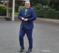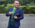 MP Erion Brace entering the parliament building for a parliamentary session. While the deputies entered the parliament, the miners protested about their pensions.