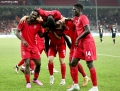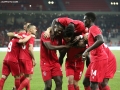 FOOTBALL PARTIZANI VS SKENDERBEU - Partizan players celebrate scoring a goal during the football match, Partizani vs Skenderbeu, 1-0, valid for the Final Four phase of the Albanian Super League, played at the Air Albania stadium in Tirana.