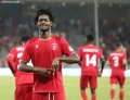 Archange Bintsouka of Partizani celebrates scoring a goal during the football match, Partizani vs Skenderbeu, 1-0, valid for the Final Four phase of the Albanian Super League, played at the Air Albania stadium in Tirana.