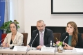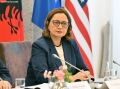 THE STRATEGY FOR THE BACKLOG OF CASES IS PRESENTED - The Minister of Justice, Ulsi Manja, the President of the High Judicial College, Naureda Llagami, the US Charge d'Affaires in Tirana, David Wisner and the Director of the Council of Europe office in Tirana, Giulia Re speaking during a round table the discussion where the National Strategy for the Reduction of Backlog Issues was presented. The event was organized by the Supreme Judicial College to speed up the trial of 114,000 pending cases.