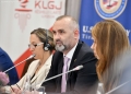Head of the Union of Judges of Albania, Erjon Bano speaking during a round table the discussion where the National Strategy for the Reduction of Backlog Issues was presented. The event was organized by the Supreme Judicial College to speed up the trial of 114,000 pending cases.