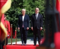 BEGAJ WELCOME THE SLOVENIAN PRESIDENT - President Bajram Begaj and Slovenian President Natasa Pirc Musar parading in front of the national guards, during an official reception ceremony near the Presidency.