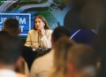 Deputy Prime Minister and Minister of Infrastructure and Energy, Belinda Balluku speaking during a meeting on Safe roads, safe tourism. The meeting focused on security measures before the start of the tourist season in Albania.