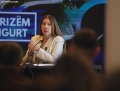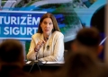 Minister of Tourism and Environment, Mirela Kumbaro speaking during a meeting on Safe roads, safe tourism. The meeting focused on security measures before the start of the tourist season in Albania.
