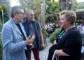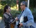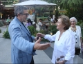 Majlinda Bregu and Zefina Hasani outside the Kinema Millenium, where the documentary Muhamerrem Fejzo in Memoriam was shown, produced by Namik Ajazi in collaboration with the State Archive.