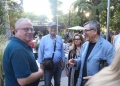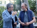 Director Namik Ajazi and Alfred Trebicka outside the Kinema Millenium, where the documentary Muhamerrem Fejzo in Memoriam was shown, produced by Ajazi in collaboration with the State Archive.