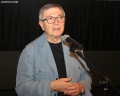 Director Namik Ajazi speaking inside the Millenium Cinema, where the documentary Muhamerrem Fejzo in Memoriam was shown, produced by Ajazi in collaboration with the State Archive.