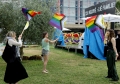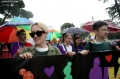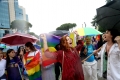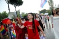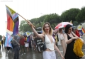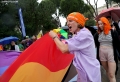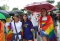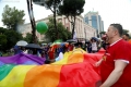 Members and supporters of the LGBT Alliance, before the Pride Parade Pride Parade, while other members hold rainbow flags and banners. The march started from the Reja installation towards the Prime Minister's office and the Presidency.