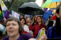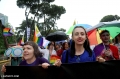 Members and supporters of the LGBTQ+ Alliance, during the Pride Parade Pride Parade, while other members carry rainbow flags and banners. The march started from the Reja installation towards the Prime Minister's office and the Presidency.