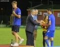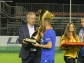 President Dejan Savicevic gives the title to the players of FK Decici after they have been declared champions, after the match Fk Decici vs Arsenal, 3-1, valid for the Superior Category of Montenegro, played at the FSCG Stari Aerodrom Training Camp stadium.