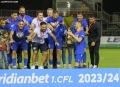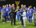 Presidenti Pal Dreshaj and the players of FK Decici raise the trophy after being declared champions, after the match Fk Decici - Arsenal, 3-1, valid for the Superior Category of Montenegro, played at the Trening kamp FSCG Stari Aerodrome stadium
