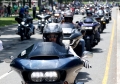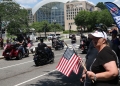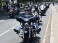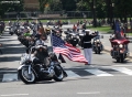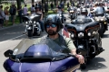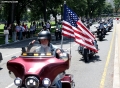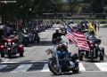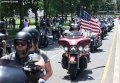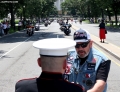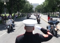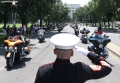 Motorcyclists ride along 23rd St NW as Tim Chambers, the Saluting Marine, salutes them as they participate in the Rolling to Remember ride near the Lincoln Memorial on Memorial Day in Washington, DC. The event, in this 36th year, will see thousands of motorcyclists from across the nation converge on the Nation's capital, to honor American prisoners of war and service members missing in action, while also calling attention to veterans' issues.