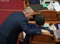 Minister of Justice, Ulsi Manja and Minister of Intern, Taulant Balla speaking during a parliamentary session. During it, a draft resolution, two draft laws and a draft decision were approved