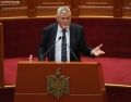 MP Dashamir Shehi speaking during a parliamentary session. During it, a draft resolution, two draft laws and a draft decision were approved
