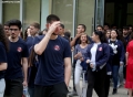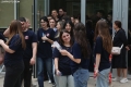 Third-year (graduating) students of the 'Sami Frasheri' high school in the school yard after the first State Matura exam, that of the English language. About 30 thousand high school graduates have taken the exam, while the thesis leaked 30 minutes after the start of the exam.