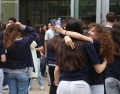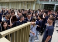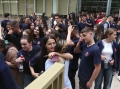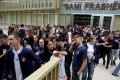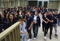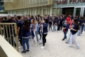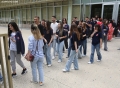 Third-year (graduating) students of the 'Sami Frasheri' high school within the building after the first State Matura exam, that of the English language. About 30 thousand high school graduates have taken the exam, while the thesis leaked 30 minutes after the start of the exam.