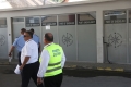 Italian police officers stand inside an immigrant center recently built by the Italian state in the port of Shengjin, about 60 km northwest of Tirana. The controversial agreement for the reception of migrants rescued in Italian waters, approved by the Albanian parliament in February 2024 and regularly denounced by opposition parties in both countries, as well as by rights groups, provides for two reception centers near the Albanian port in Shengjin, where immigrants would register for asylum, as well as a facility near a former military airport in Gjader to house those waiting for a response to their applications.