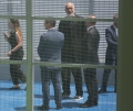 Ministers Ulsi Manja, Taulant Balla and Niko Peleshi during a press conference of Prime Minister Edi Rama and Italian Prime Minister Georgia Meloni in the premises of a reception center for immigrants in Shengji, near Lezhe. The controversial agreement for the reception of migrants rescued in Italian waters, approved by the Albanian parliament in February 2024 and regularly denounced by opposition parties in both countries, as well as by rights groups, provides for two reception centers near the Albanian port in Shengjin, where immigrants would register for asylum, as well as a facility near a former military airport in Gjader to house those waiting for a response to their applications.