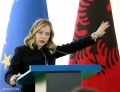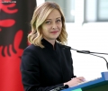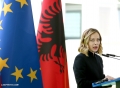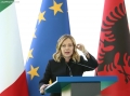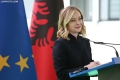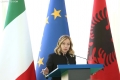 The Italian Prime Minister, Georgia Meloni speaking at a joint press conference with the Albanian Prime Minister, Edi Rama in the premises of a reception center for immigrants in Shengjin, near Lezha. The controversial agreement for the reception of migrants rescued in Italian waters, approved by the Albanian parliament in February 2024 and regularly denounced by opposition parties in both countries, as well as by tender groups, provides for two reception centers near the Albanian port. in Shengjin, where the immigrants will be for asylum, as well as an object near a former military airport in Gjader to house those who are waiting for an answer to their applications.