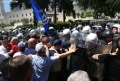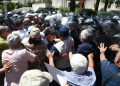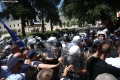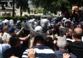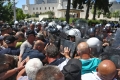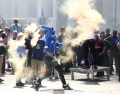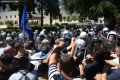 PROTESTS IN FRONT OF THE PARLIAMENT - A protester throws a smoker at the police force during a protest in front of the parliament, while a parliamentary session is being organized inside the building. The protest came as a result of the Italian channel Rai3 reporting on Albania.