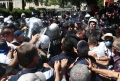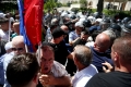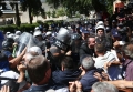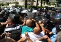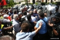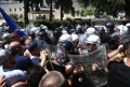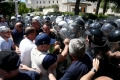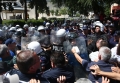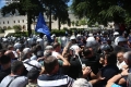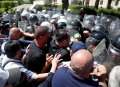 Protesters clash with the police forces during a protest in front of the parliament, while a parliamentary session is being organized inside the building. The protest came as a result of the Italian Rai3 channel's reporting on Albania.