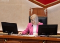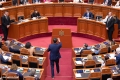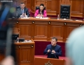 The Minister of State for Relations with the Parliament, Elisa Spiropali during a moment of tension in a parliamentary session. A re-establishment protest was organized outside the premises of the parliament, where the protesters clashed with the police forces, as a result of Rai 3's report on Albania.