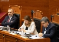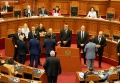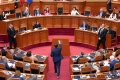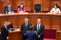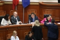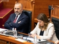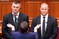 PARLIAMENTARY SESSION - The Minister of State for Relations with the Parliament, Elisa Spiropali and MPs Gazment Bardhi and Oerd Bylykashi during a moment of tension in a parliamentary session. A re-establishment protest was organized outside the premises of the parliament, where the protesters clashed with the police forces, as a result of Rai 3's report on Albania.