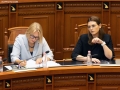 The Minister of Justice, Ulsi Manja and the Minister of Education and Sports, Ogerta Manastirliu during a moment of tension in a parliamentary session. A re-establishment protest was organized outside the premises of the parliament, where the protesters clashed with the police forces, as a result of Rai 3's report on Albania.