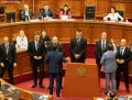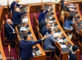 Opposition MPs during a moment of tension in a parliamentary session. A re-establishment protest was organized outside the premises of the parliament, where the protesters clashed with the police forces, as a result of Rai 3's report on Albania.
