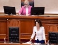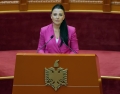 Deputy Prime Minister and Minister of Infrastructure and Energy, Belinda Balluku speaking during a moment of tension in a parliamentary session. A re-establishment protest was organized outside the premises of the parliament, where the protesters clashed with the police forces, as a result of Rai 3's report on Albania.