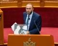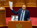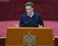 MP Gazment Bardhi speaking during a moment of tension in a parliamentary session. A re-establishment protest was organized outside the premises of the parliament, where the protesters clashed with the police forces, as a result of Rai 3's report on Albania.