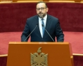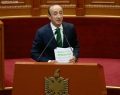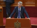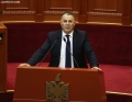 MP Dashnor Sula speaking in a parliamentary session. A re-establishment protest was organized outside the premises of the parliament, where the protesters clashed with the police forces, as a result of Rai 3's report on Albania.