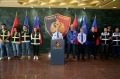 STATE POLICE CONFERENCE - The General Director of the State Police, Muhamet Rrumbullaku speaking during a press conference. Rrumbullaku gave details on the police action which resulted in the arrest of 21 people, who were accused of human trafficking in EU countries.