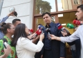 Lulzim Basha speaking to journalists after leaving a meeting of the chairmanship of the deputies within the democratic party who support Basha. The Court of Appeal has decided that the seal of the Democratic Party should be returned to the group that supports former Prime Minister Sali Berisha. Basha said that the next steps will be discussed.