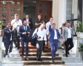 RE ESTABLISHMENT RECEIVES THE SEAL OF THE DP - MPs Agron Gjekmarkaj, Flamur Noka, Gazment Bardhi and Luan Baci holding up two fingers after leaving the Court of Appeal, as the latter has decided that the seal of the Democratic Party be returned to the group that supports former Prime Minister Sali Berisha, Reestablishment. The Court of Appeal has reinstated the decision of the judge Agron Zhukri.