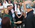 Vali Bizhga, Valentina Leskaj, Minister of Agriculture and Rural Development, Anila Denaj during the celebrations organized near the headquarters of the Socialist Party, on the occasion of the 33rd anniversary of the founding of this party. Important figures, who have given their contribution to the Socialist Party, were present at the party.