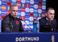 PRESS CONFERENCE BEFORE THE MATCH - The coach of the Albanian national football team, Sylvinho, and the player of the Albanian national football team, Berat Gjimshiti, speaking at a press conference before the match between the Albanian national team and Italy, in the framework of the group stage for EURO 2024. This is the second time that Albania takes part in a European championship.
