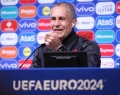 The coach of the Albanian national football team, Sylvinho speaking at a press conference before the match between the Albanian national team and Italy, in the framework of the group stage for EURO 2024. This is the second time that Albania takes part in a European championship.