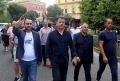 MP Flamur Noka and Luciano Boci during a protest in front of the municipality of Tirana. The protest was organized by the Alliance for the Protection of the Theater, an opposition MP and a supporter of Reestablishment. The protesters have stated that the protests will continue until the mayor of Tirana, Erion Veliaj, resigns.