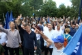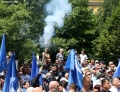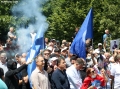 MP Flamur Noka and other citiznes during a protest in front of the municipality of Tirana. The protest was organized by the Alliance for the Protection of the Theater, an opposition MP and a supporter of Reestablishment. The protesters have stated that the protests will continue until the mayor of Tirana, Erion Veliaj, resigns.