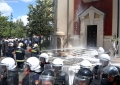PROTESTS IN FRONT OF THE MUNICIPALITY OF TIRANA - Protesters collide with the police forces while the latter use pressurized water during a protest in front of the municipality of Tirana. The protest was organized by the Alliance for the Protection of the Theater, an opposition MP and a supporter of Reestablishment. The protesters have stated that the protests will continue until the mayor of Tirana, Erion Veliaj, resigns.