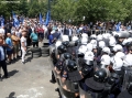 Police forces during a protest in front of the municipality of Tirana. The protest was organized by the Alliance for the Protection of the Theater, an opposition MP and a supporter of Reestablishment. The protesters have stated that the protests will continue until the mayor of Tirana, Erion Veliaj, resigns.