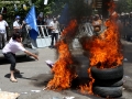 Tires burning during a protest in front of the municipality of Tirana. The protest was organized by the Alliance for the Protection of the Theater, an opposition MP and a supporter of Reestablishment. The protesters have stated that the protests will continue until the mayor of Tirana, Erion Veliaj, resigns.