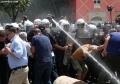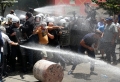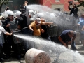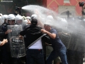 Protesters collide with the police forces while the latter use pressurized water during a protest in front of the municipality of Tirana. The protest was organized by the Alliance for the Protection of the Theater, an opposition MP and a supporter of Reestablishment. The protesters have stated that the protests will continue until the mayor of Tirana, Erion Veliaj, resigns.